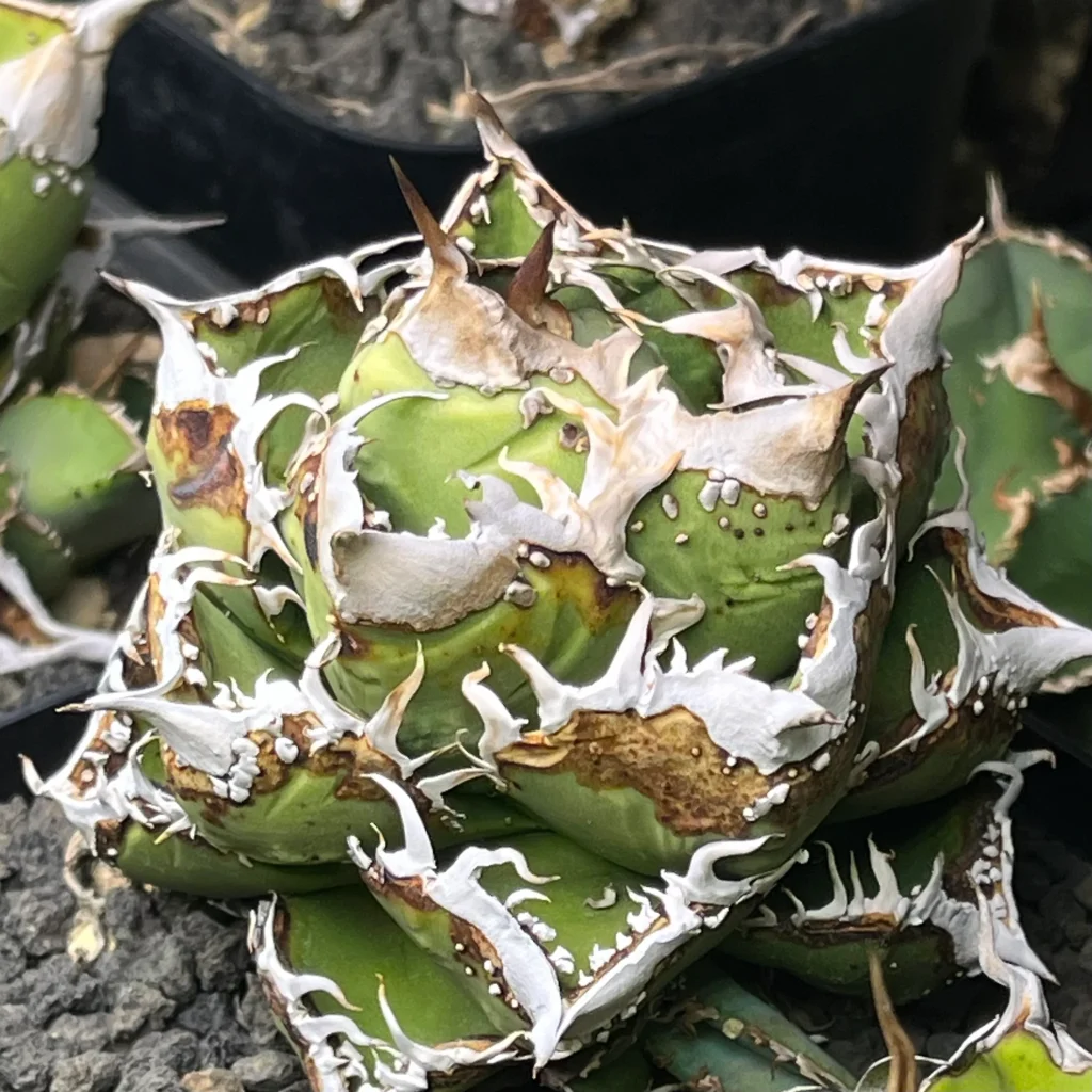 アガベの外観が持つ鋭さも、歪みも、荒野が育てた造形美。写真では伝わらない個体差をぜひ実物でご覧ください。