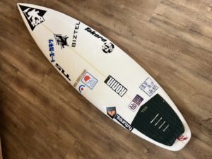 フロントとバックにはHandwriting Sign PainterのNUTS ART WORKS氏によるロゴを、スベリ部分にはブランドキーワードである、「SEE YOU IN THE WATER」を刺繍。